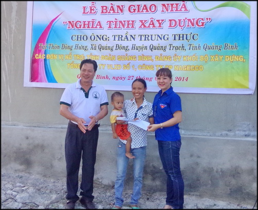 Bàn giao nhà "Nghĩa tình xây dựng " cho gia đình Anh Trần Trung Thực tại Quảng Bình. Ảnh: IDICO.